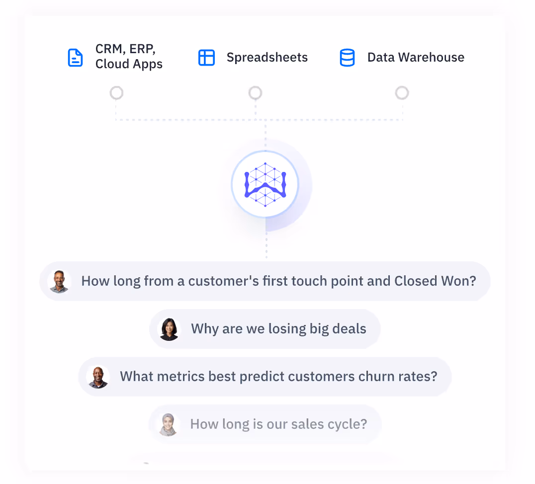 Pull additional data from CRM, support, and operational systems.