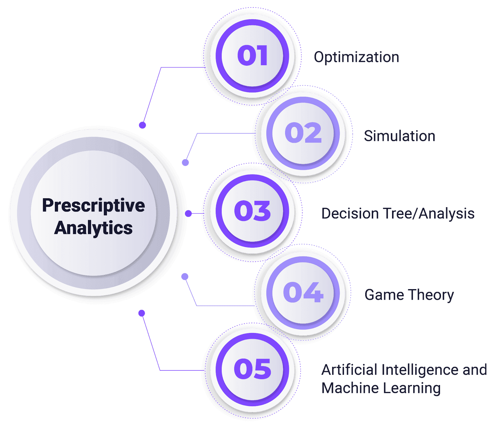 Provides actionable steps and strategies to answer “what should we do next?”; relies on optimization algorithms, simulations, etc. | Business strategy | Results depend on the accuracy of underlying models and organizational buy-in. |