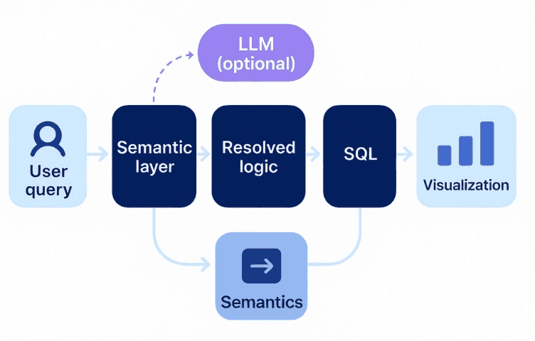 Most BI systems were never created to support AI agents or LLMs. For an LLM to provide accurate, useful, and governed insights, it needs to work on well-structured, well-described data, not just rows sitting in a warehouse.