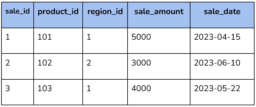 “Sales” → SUM(sale_amount) from the Sales table