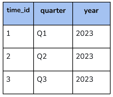 “Q2” → sale_date from the Sales table, cross-referenced with Q2 in the Time table